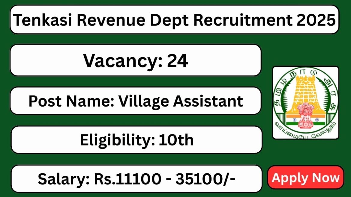 The Tenkasi Revenue and Disaster Management Department has released the official notification for the recruitment of 24 Village Assistant (VA) posts. Eligible candidates can download the application form from the official website and apply offline. The last date to submit applications is October 24, 2025, at 5:45 PM.