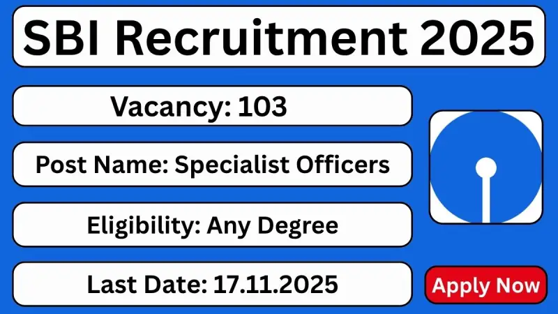 The State Bank of India (SBI) has announced its latest recruitment under Notification No. CRPD/SCO/2025-26/15 for 103 Specialist Cadre Officer (SCO) positions. Eligible and skilled candidates can apply online through the official website https://sbi.bank.in/ from October 27, 2025, to November 17, 2025. Before applying, candidates must review the detailed notification and ensure they meet all eligibility conditions.